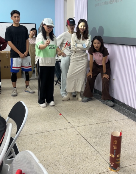 活动现场还穿插了丰富多彩的互动小游戏,如知识问答与投壶等。知识问答环节不仅让师生们感受到了中华文化的博大精深,还激发了大家对传统文化的浓厚兴趣;而投壶游戏则更是激起了大家的胜负欲,大家乐此不疲地参与其中,享受着游戏带来的乐趣与挑战。对于表现优异的同学,主办方还准备了精美的小礼品以示鼓励。