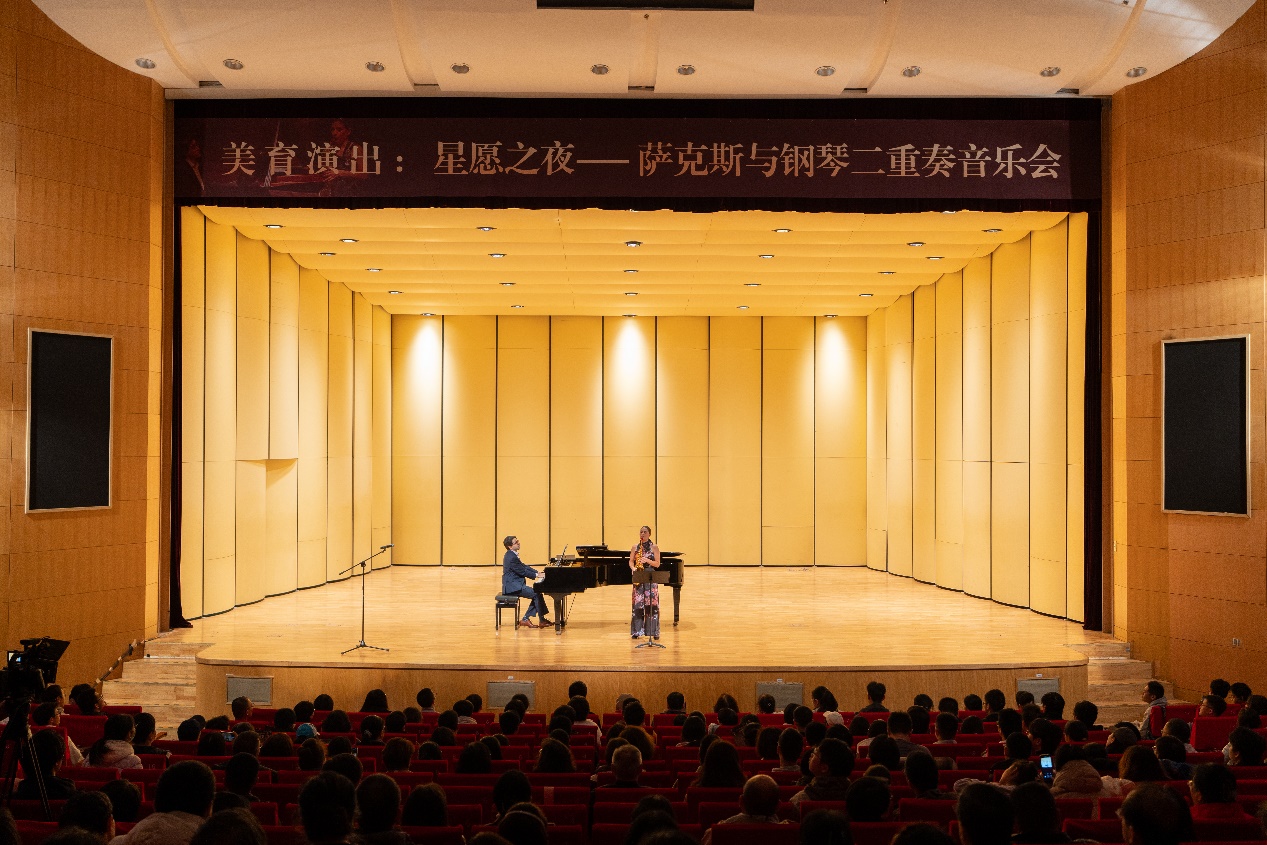 11月6日晚,北航美育中心特邀美育演出《星愿之夜——萨克斯与钢琴二重奏音乐会》在学院路校区晨兴音乐厅举办。